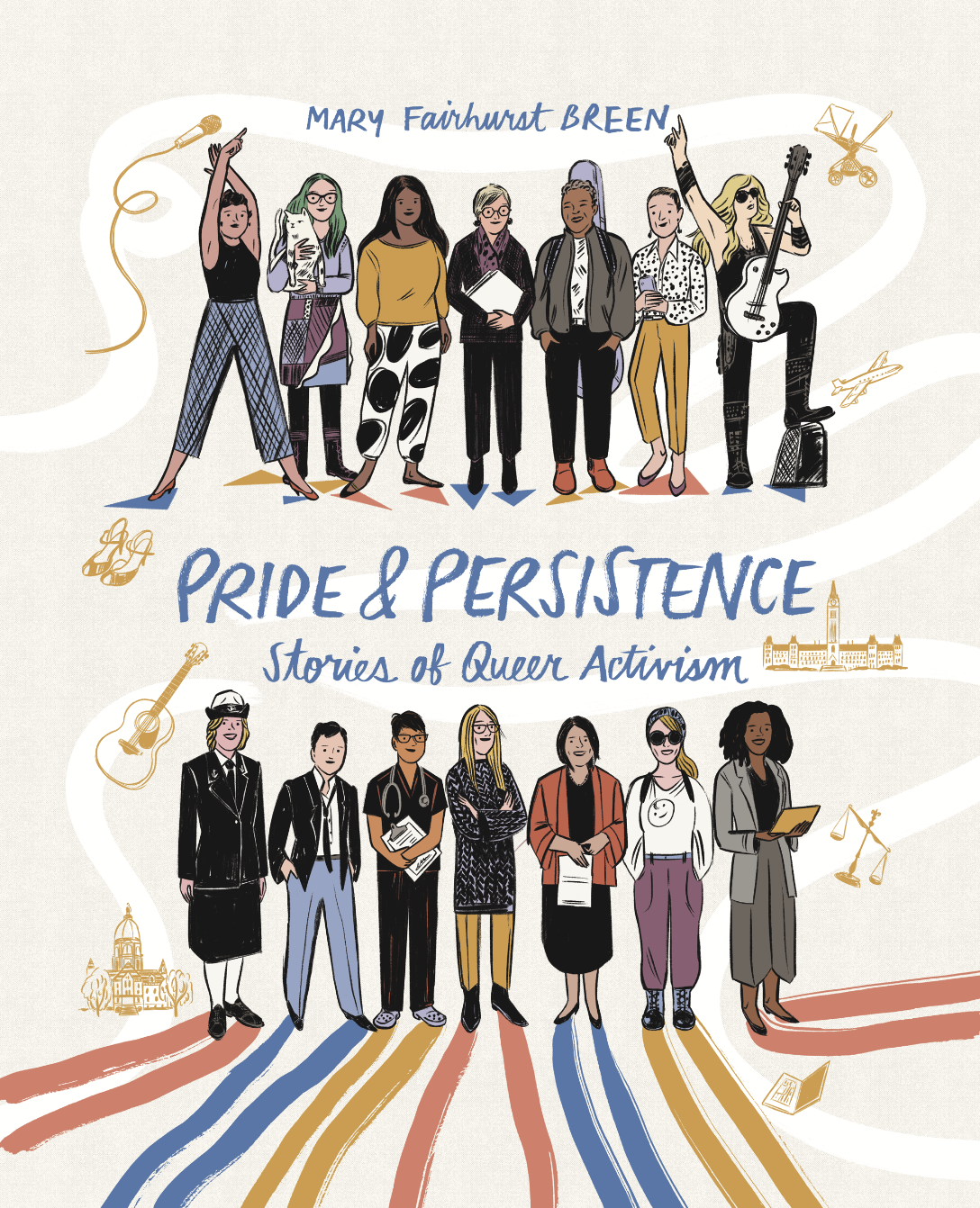 Review, Canadian Children’s Book News, Winter 2023-2024: Pride & Persistence: Stories of Queer Activism, written by Mary Fairhurst Breen and illustrated by Katy Dockrill, is an outstanding inspirational, educational and engaging exploration of more than a dozen people who have faced exclusivity and discrimination because of their gender identity and sexuality… An important resource for classrooms, and home and public libraries everywhere, this thought-provoking book will also serve to launch much keen and critical discussion around not only the massive changes that have happened but also all the changes that still need to come for future generations. As Fairhurst Breen says in her introduction, “You can start to change things just by making honest connections with yourself and others. Whoever you are, wherever you are, I hope the stories in this book make you think, ‘I can do that!’” Very highly recommended.